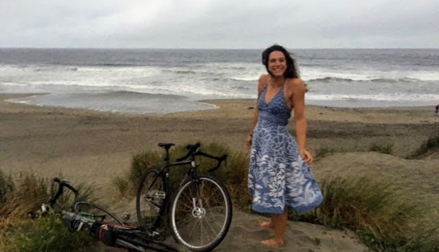 Who bikes to the beach in a dress?!? |